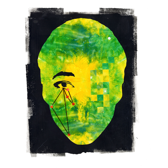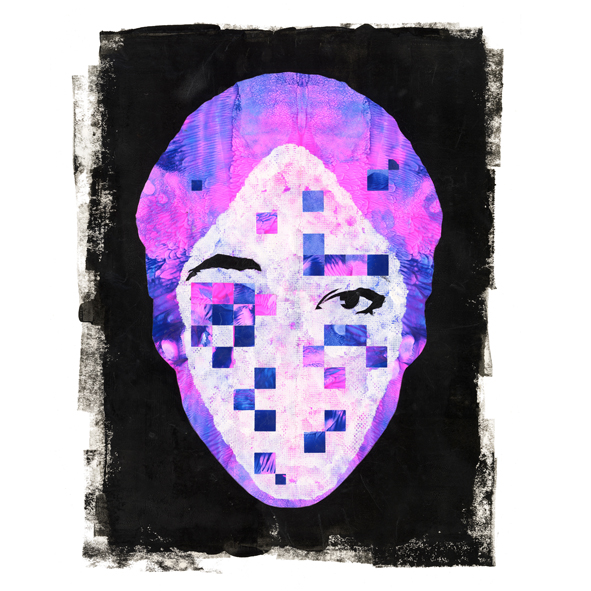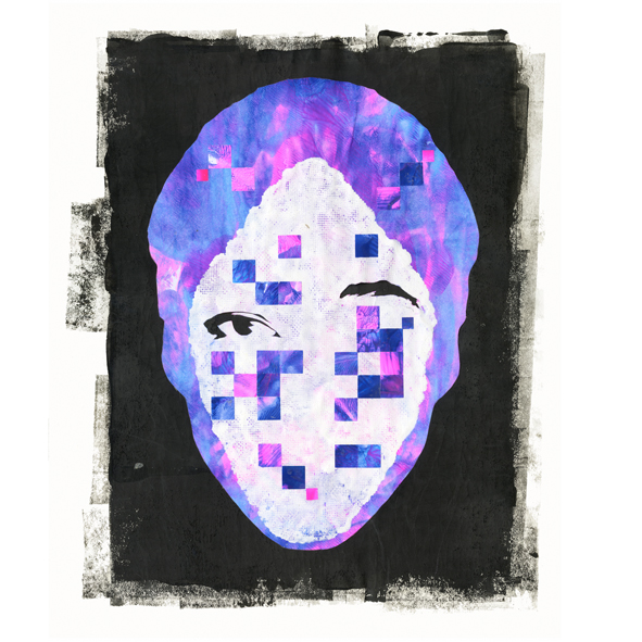 The faces in this work have a melancholic and haunting feel to them, as they struggle to be seen & heard among the sea of pixels and digital noise fighting for our attention. Like spectral chameleons, these swirling balls of energy mimic our contemporary environment, with geometric shapes and features that manifest into forms we are more likely to recognise and take notice. They are prophetic visions, warning us that our time is running out unless we start to listen to the lessons of the ancient ones and heed our self-destruction.